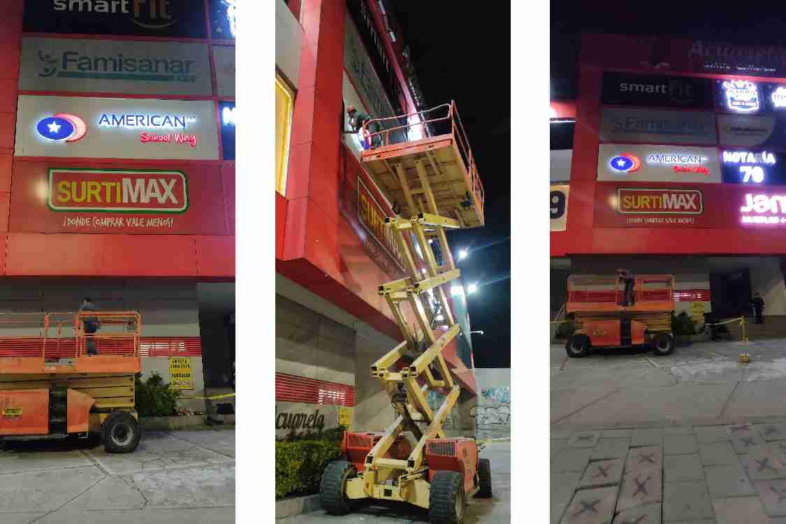 Servicio especializado en mantenimiento preventivo y correctivo de avisos de fachada, estructuras metálicas y luminarias publicitarias.